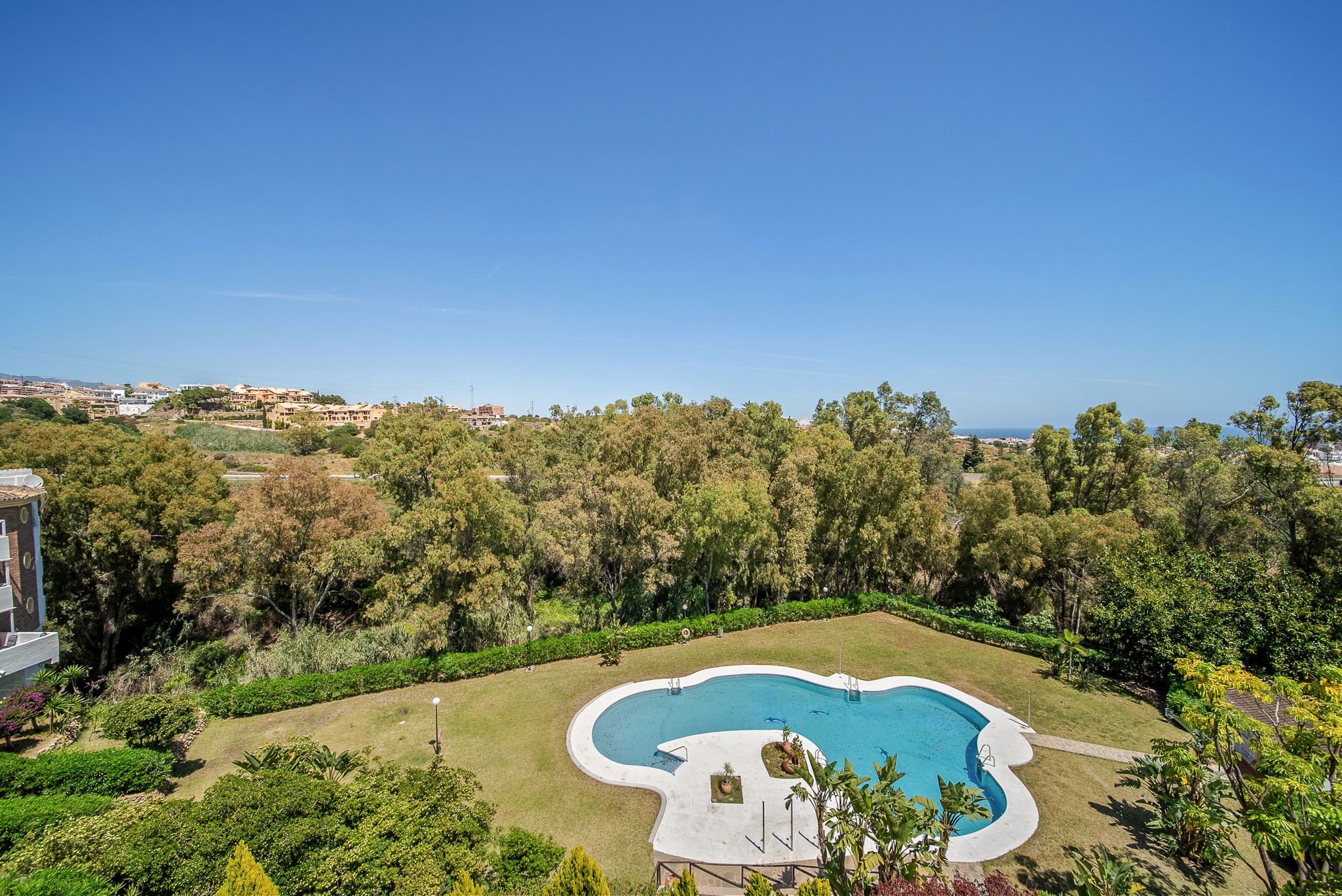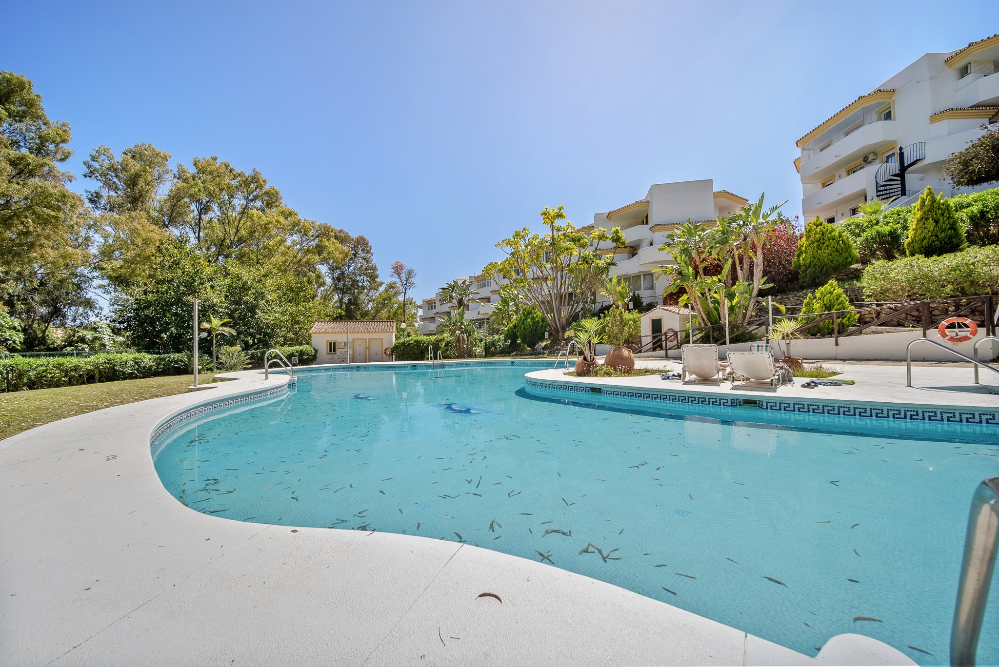 Leiligheten er en del av et velholdt sameie som byr på et pent, felles bassengområde omgitt av frodige, rolige hager. En stor fordel er også at du har tilgang til en innvendig garasjeplass, som gjør parkering enkelt og trygt.