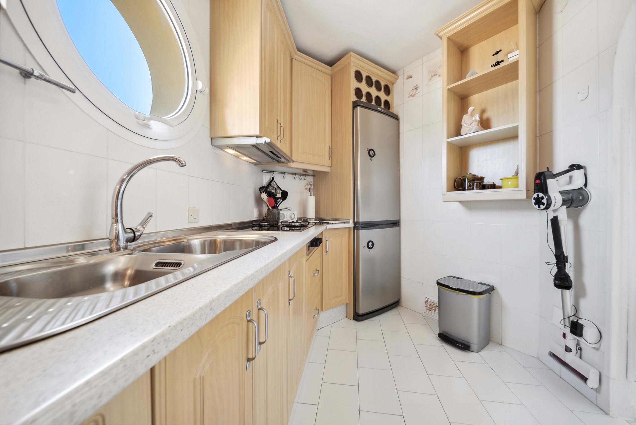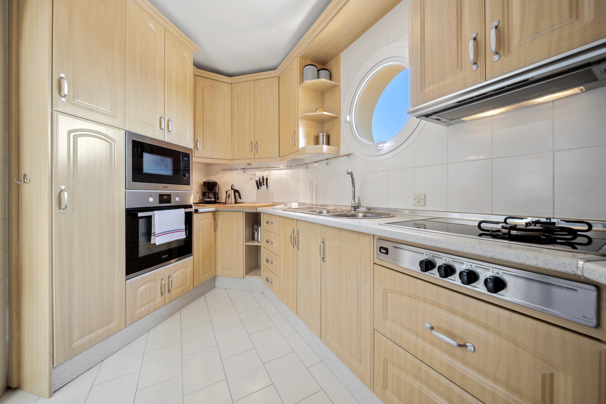 • Velutstyrt kjøkken: Det lyse kjøkkenet har god skap- og benkeplass. Det er utstyrt med komfyr (gass og elektrisk), mikro og stort kjøleskap med frysedel. Kjøkkenet er plassert praktisk tilstøtende til stuen.