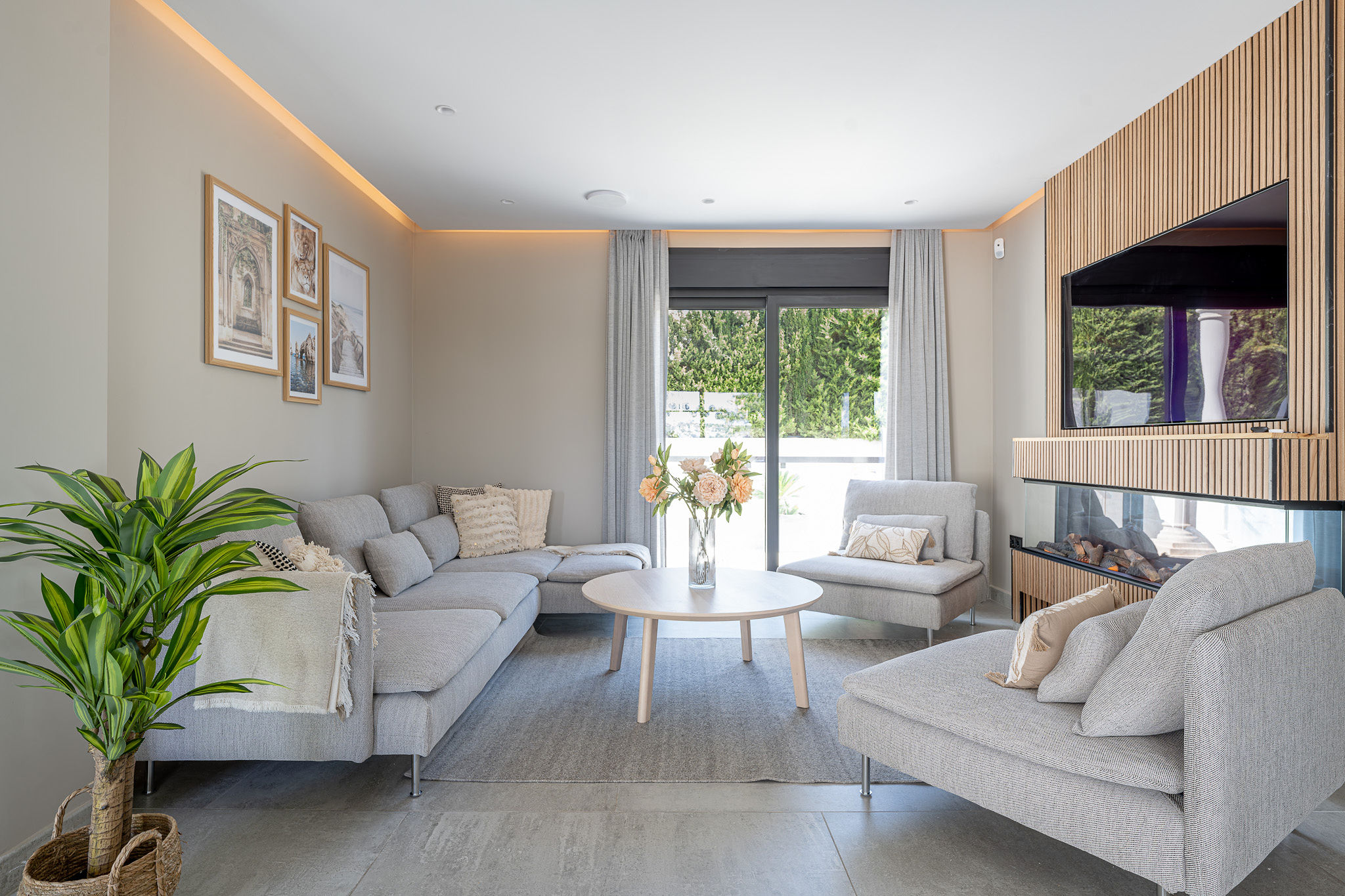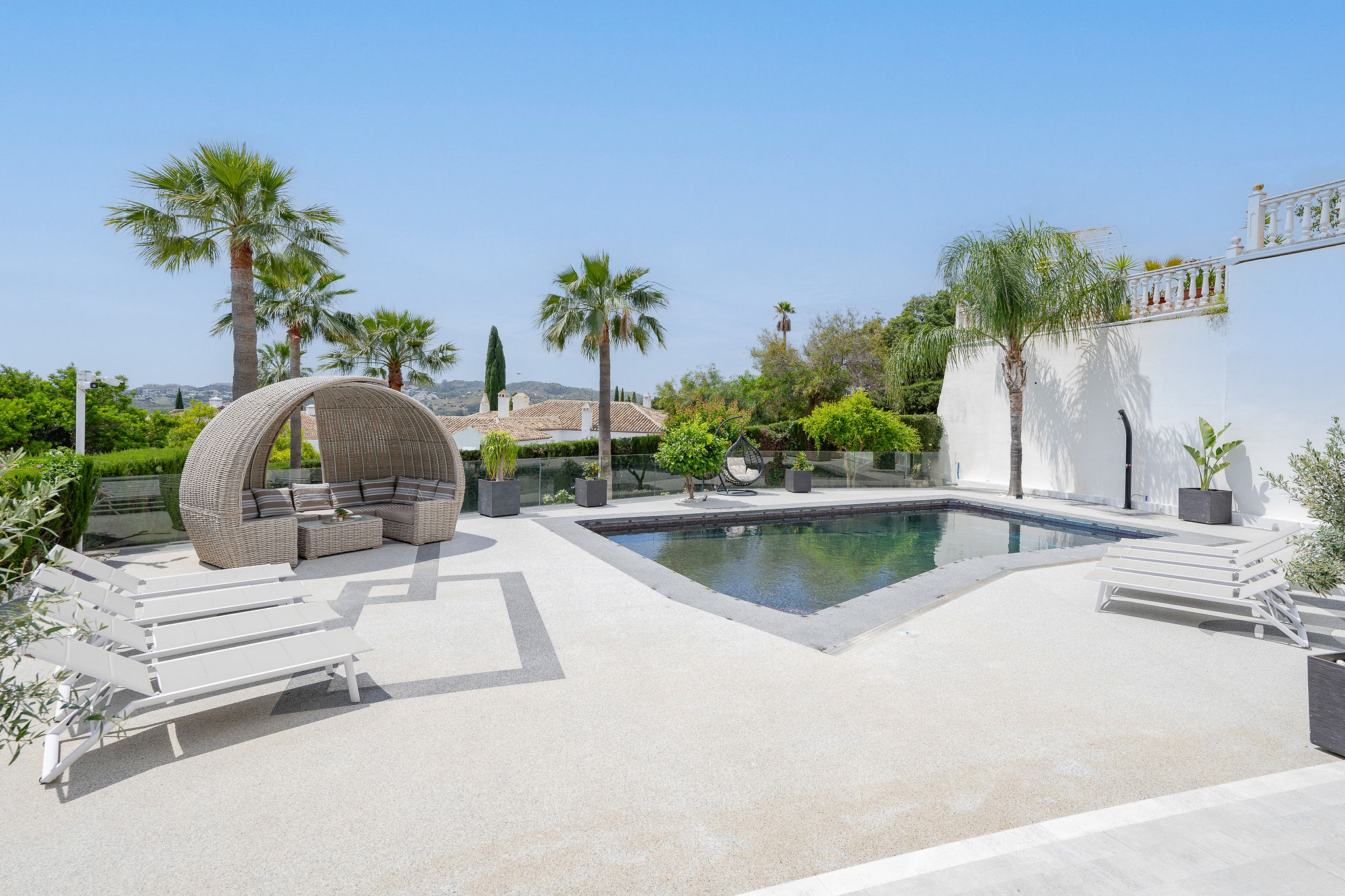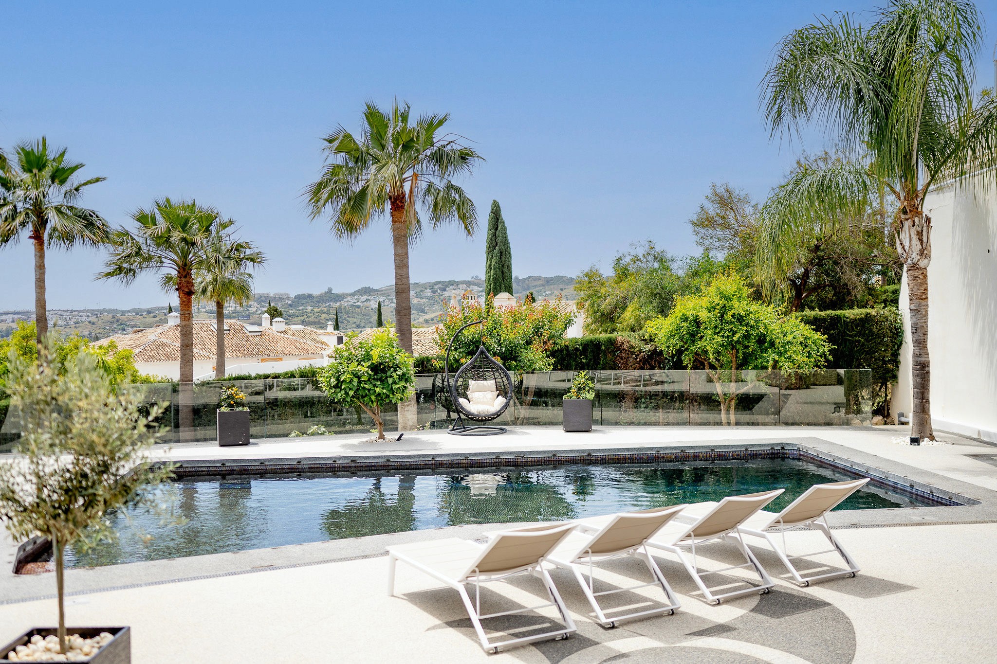 Velkommen til en sjelden perle av en eiendom, perfekt beliggende i et rolig og etablert villaområde ved anerkjente Mijas Golf. Boligen ble totalrenovert for kun et år siden og fremstår i dag som lys og moderne med en gjennomført nordisk minimalisme. Her er alt lagt til rette for en avslappende ferie i eksklusive omgivelser.