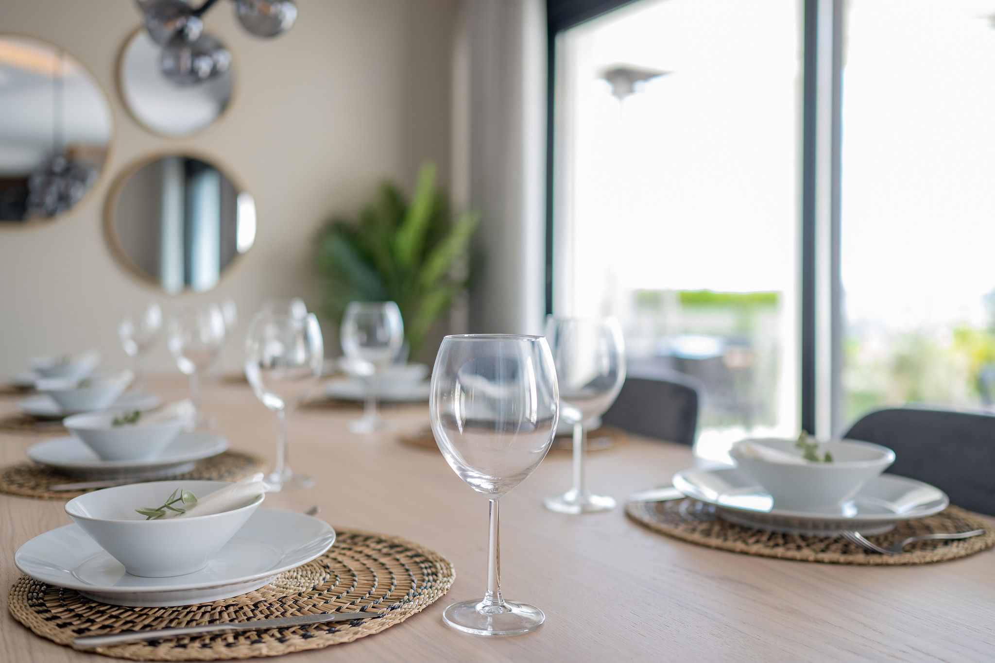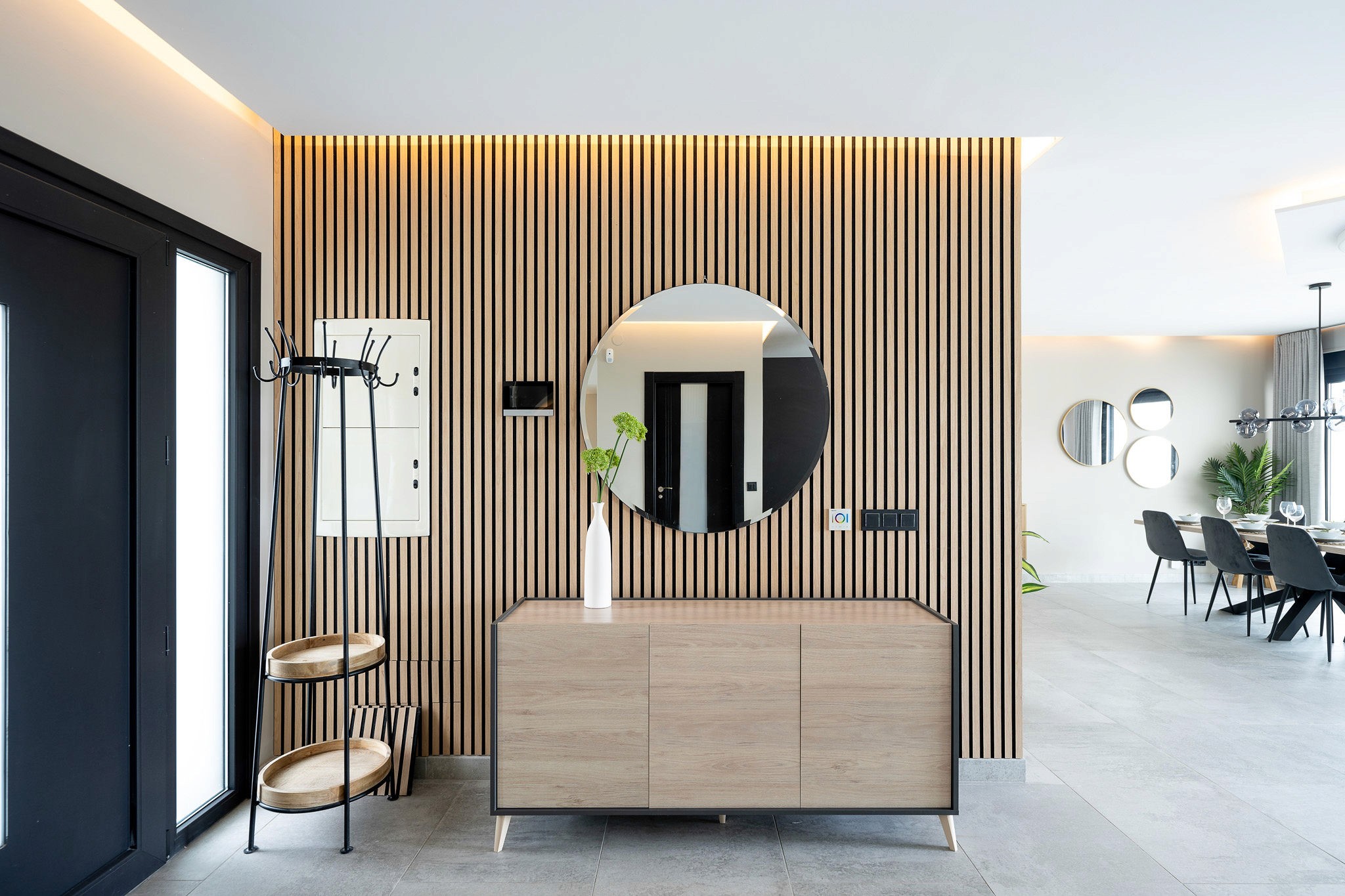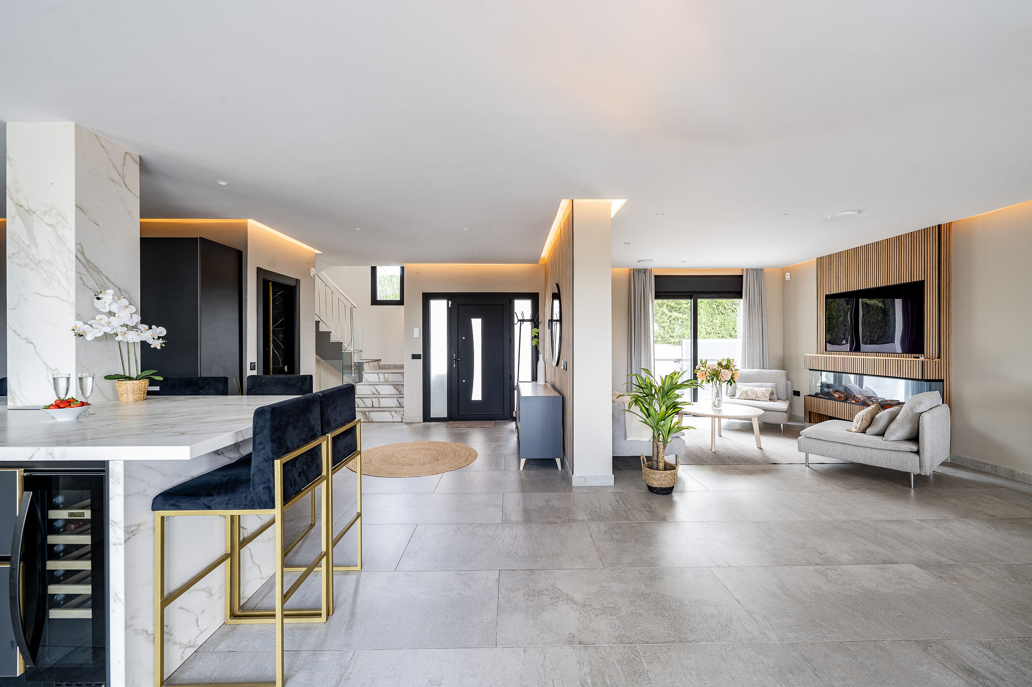 Villaen strekker seg over 300 m2 fordelt på tre plan, og holder en eksepsjonelt høy standard. Interiøret er preget av en lys, naturlig fargepalett og gjennomførte løsninge. Her er ignenting overlatt til tilfeldighetene.