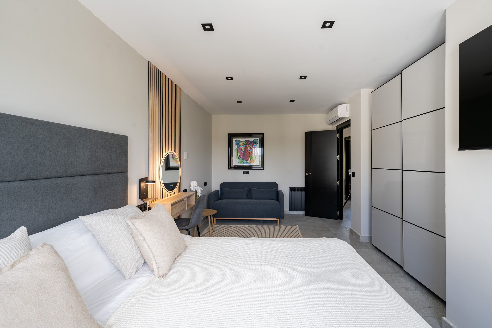 Egen leilighet (underetasje): En stor fordel med denne villaen er den selvstendige leiligheten i underetasjen. Den har egen inngang fra bassengområdet (men også innvendig trapp), og inneholder egen stue, kjøkken, soverom og bad. Perfekt for besteforeldre, ungdommer eller de som ønsker litt ekstra privatliv.