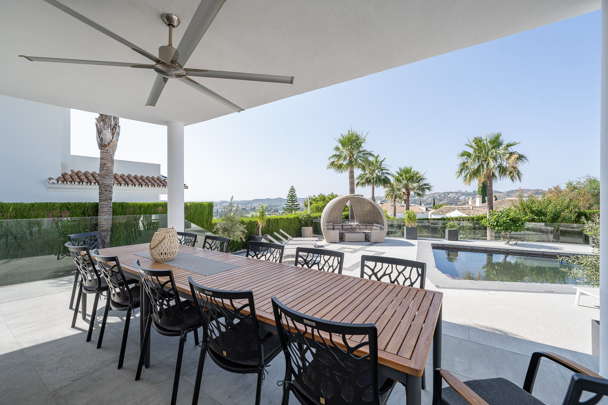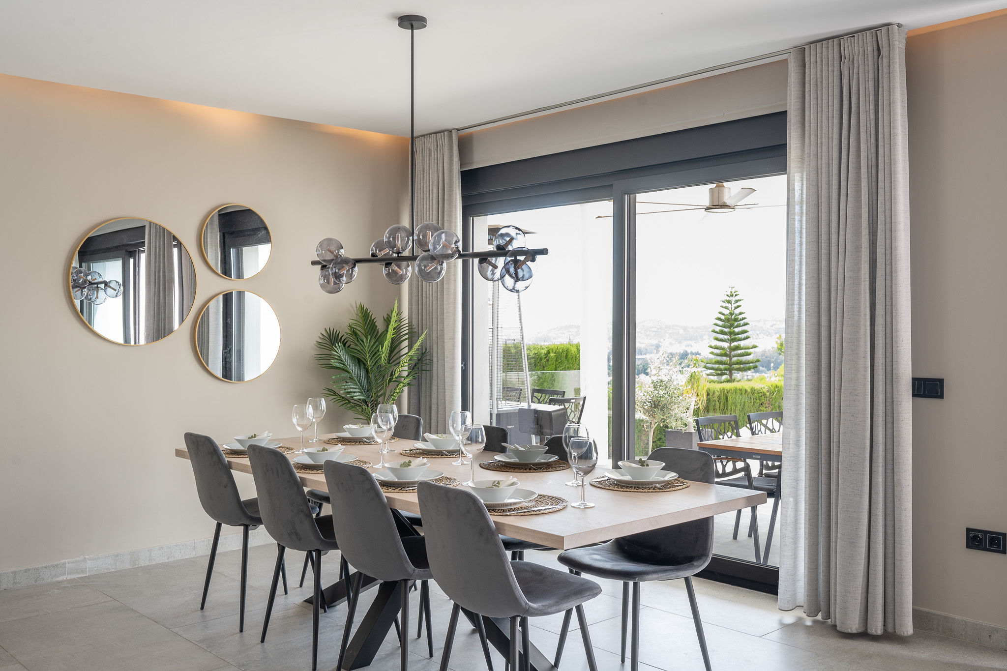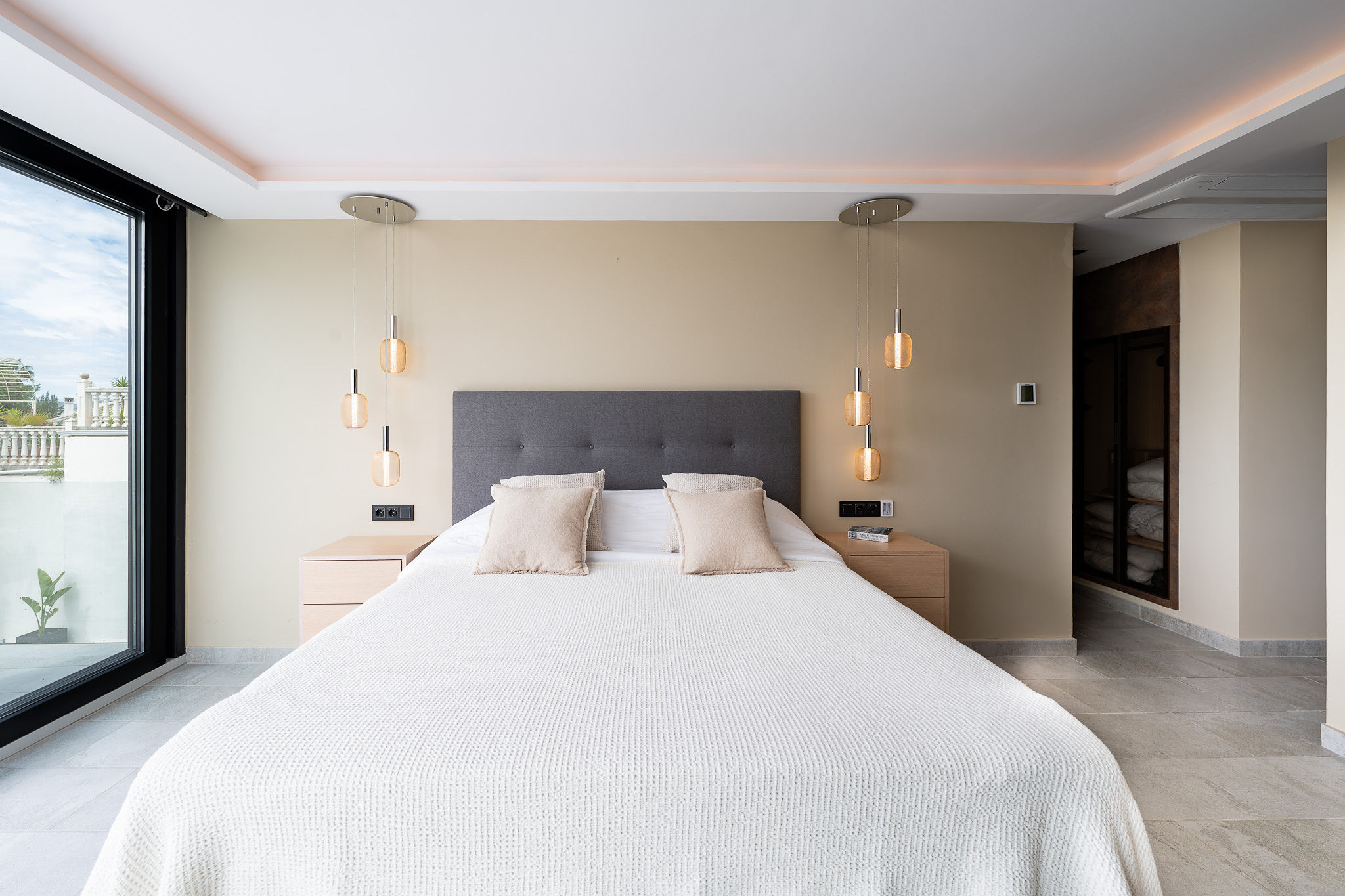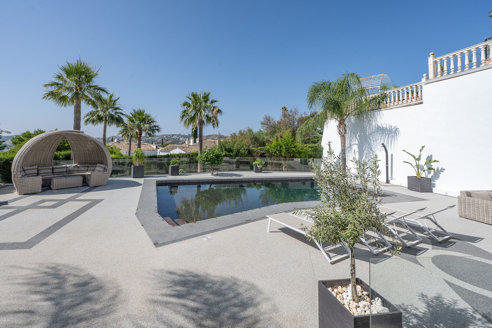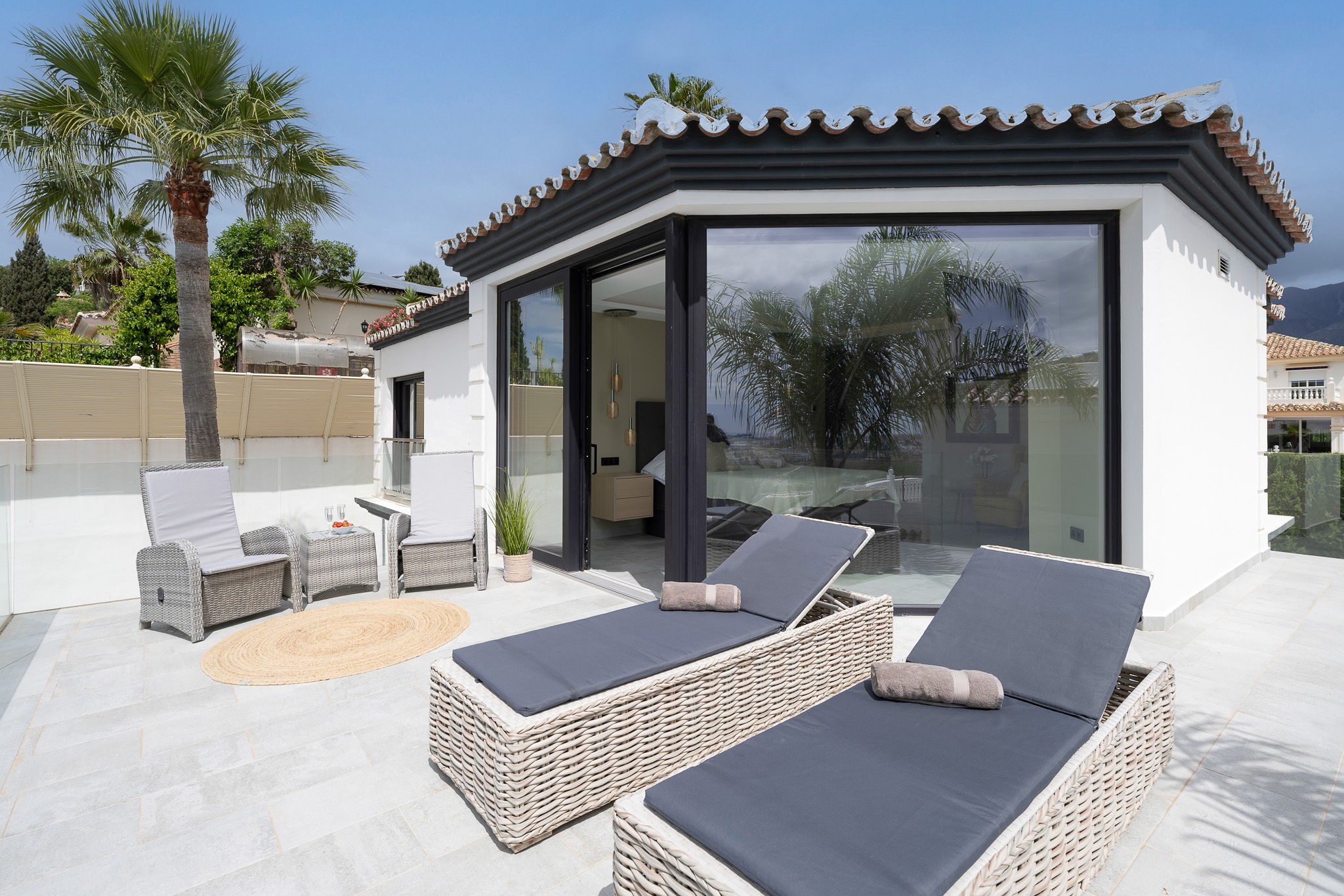 Eierne har lagt stor vekt på å skape en sømløs overgang mellom ute- og inneplassene. Med store glassflater og en lys, luftig atmosfære, føles boligen som en rolig oase. Her kan du nyte en helt uforstyrret utsikt over Fuengirola og Middelhavet, enten du sitter i den lune utestuen under pergolaen eller tar en forfriskende dukkert i det store, private bassenget (5x10 meter).