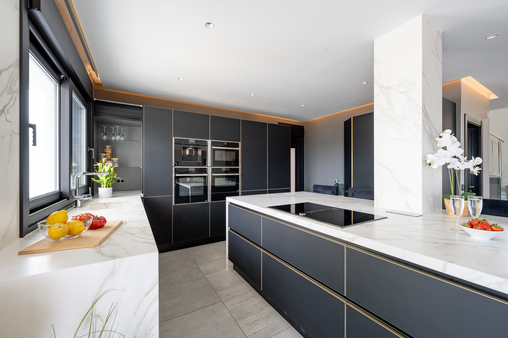 Hovedetasje – Det sosiale hjertet: En romslig stue i åpen løsning mot et kjøkken som er en drøm for den matglade. Det eksklusive kjøkkenet er utstyrt med hvitevarer i toppklassen, inkludert to stekeovner og integrert mikro. Fra stuen er det direkte adkomst til den store, overbygde terrassen.
